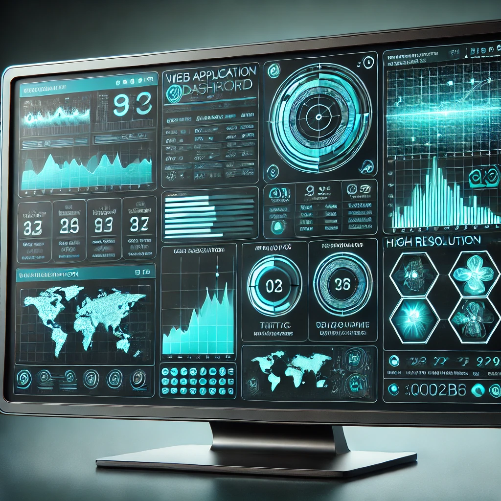نمایی آیندهنگر از داشبورد یک برنامه وب، شامل تحلیلها، نمودارها و ردیابی دادههای بلادرنگ.