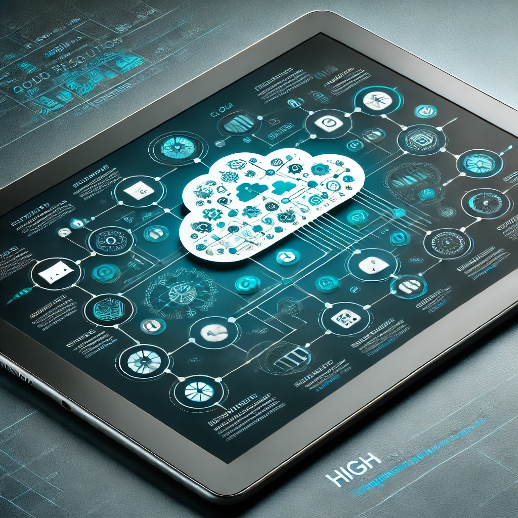 نمودار معماری محاسبات ابری بر روی تبلت، نشاندهنده سرویسهای متصل و جریان دادهها با استفاده از رنگ تئال.